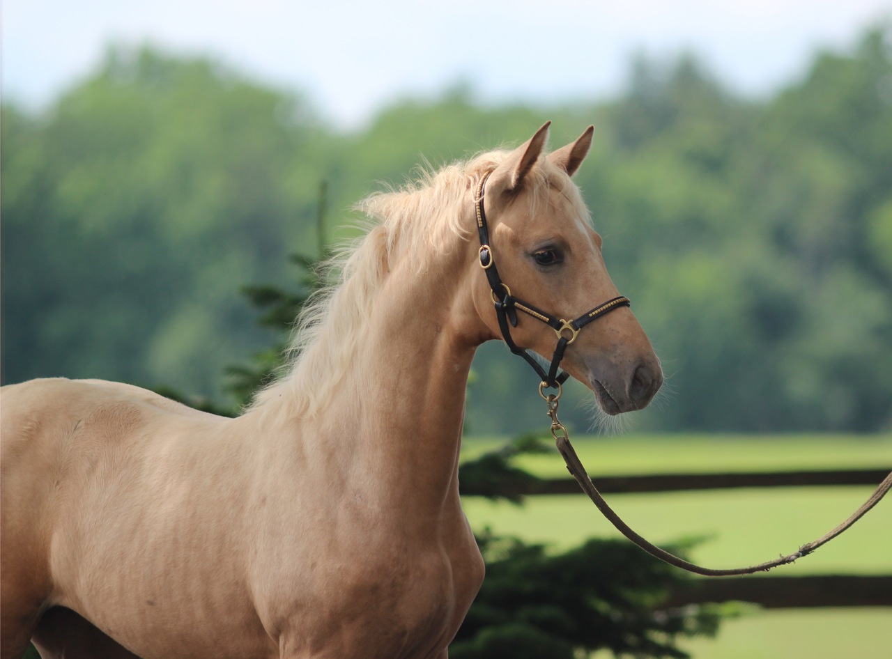 investment in an attempt to extend the legacy of her beloved old man. She carefully selected four mares of high quality and had them bred with the precious saved semen. Katje’s fertility was not high, due to previous poor care and his health issues, so his owner was gambling that she would get a couple of foals from this effort – with the hope that one would turn out to be a filly to carry on his legacy. To her own astonishment, all four breedings produced foals – two chestnut colts, and two palomino fillies! Jackpot!