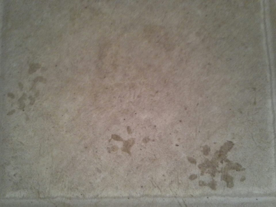 leaving its “calling card” on the floor of my tackroom. It might have been a rat – we had an explosion of them last year (hazards of having a barn) – but somehow that didn’t seem quite right. Our next clue came when the visitor left a few paw prints one night. I had some slight suspicions about our visitor – and this seemed to confirm them. The very next night we had our answer.