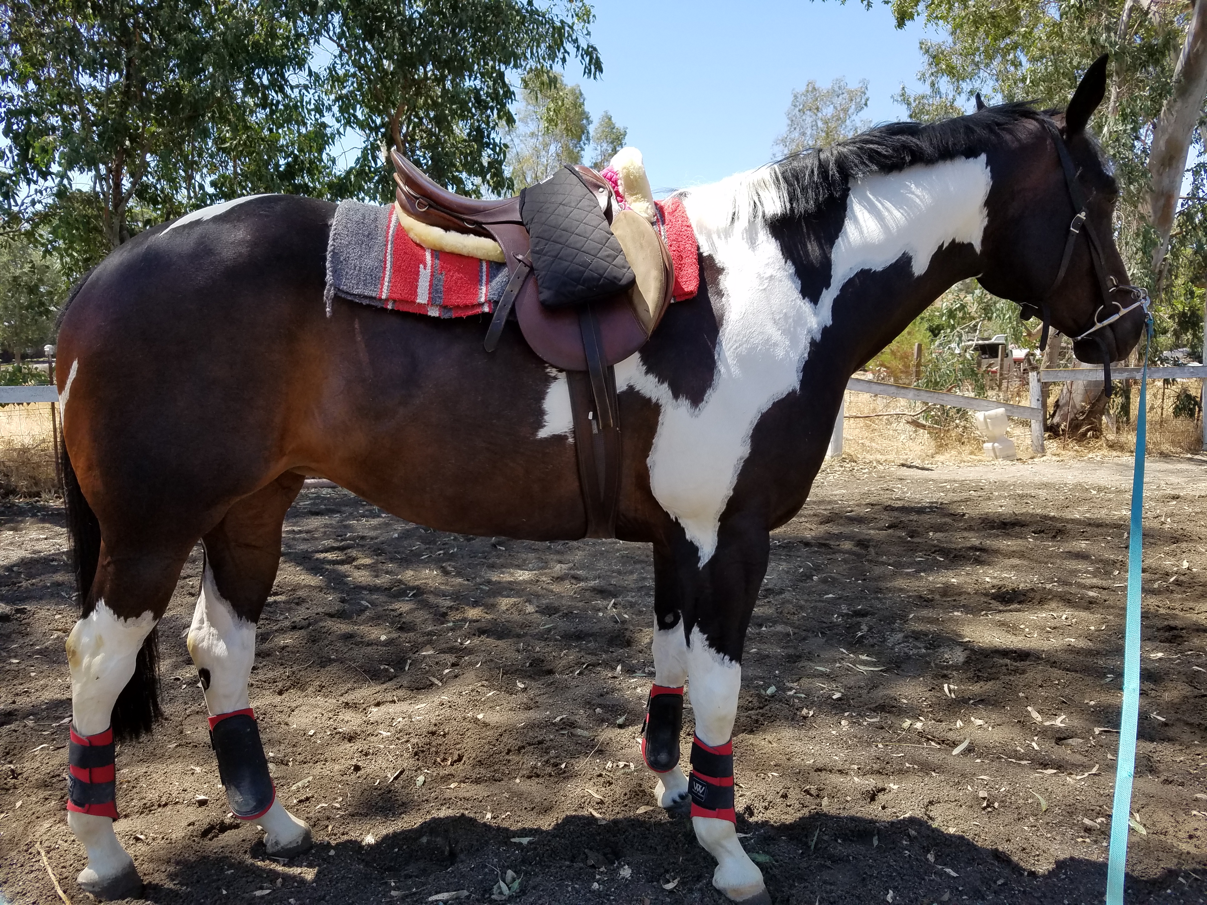 Riding styles – Both horses were started late, by Western riding standards (where horses are typically under saddle by two), but the way they were started was very different. Coffee was started by immediately riding in the slow gaits and low profile typical of modern Western Pleasure. Contact was something to be avoided. In fact, when I did my trial ride I kept the contact light by any English standard, with a small droop in the reins. Yet, I was admonished that I was riding with more contact than Coffee was used to.