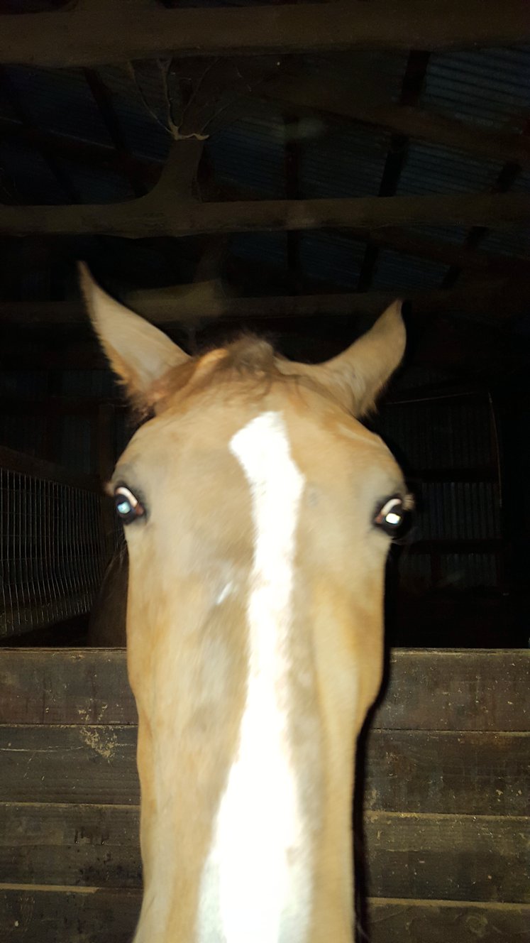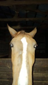 Although he could easily have snatched it, he waits until I move it slightly toward his nostrils and say “Okay.”  I stand in the dark, his huge head hung over my shoulder, as he carefully extracts each strand from my cupped hands.  As I listen to the soft munching at my ear, I ponder why he would choose this small morsel over the hay at his feet.