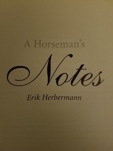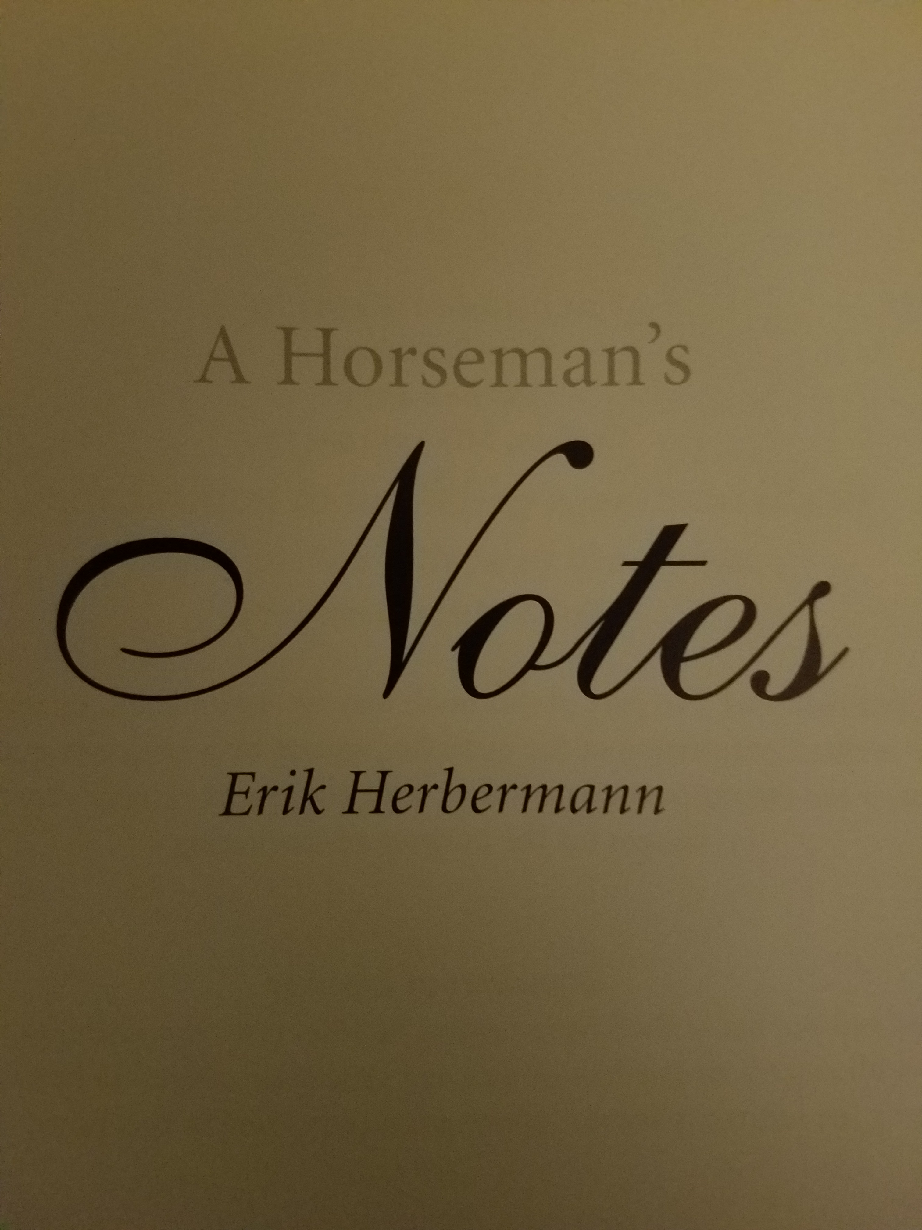 In my equestrian library are a handful of books that I return to repeatedly – either for reference or just for the pleasure of rereading. One of these cherished books, A Horseman’s Notes by Erik Herbermann, was a suggestion by a used book seller when she did not have the book I was after. She said this out of print gem was one of her favorites, so I bought it on faith. It has turned out to be one of my all time favorites!