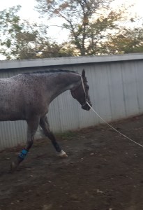 Recently Roxie has had a bit of a fungus attack on her face. We’ve been treating it, but I’ve also been keeping her exercised, as weather permits. Unfortunately, she and Coffee share the lunge cavesson, and we don’t want to expose Coffee to her fungus. So, since he is quite the workman these days, I decided to revert to the lunge line over the bridle arrangement for him. Never did I dream that, after so many years, he would remember his little trick – and so quickly.