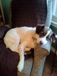 Macie, the laidback.  When Brita was diagnosed with a terminal illness, and given only a few months to live, I knew that I would not want another dog after she passed.  Yet, my mother’s little Kelly would need a companion.  So, I set out to find a young dog before Brita’s illness had progressed too far.  The result was Macie, a very laid back Brittany.  Macie was, in many ways, the exact opposite of Brita.  Macie was never much interested in learning – she is solidly obedient, but really didn’t care much for the training process.  Macie is definitely not “my” dog – she is everyone’s friend.  I feel affectionate toward Macie, but cannot honestly say that I’ve ever “loved” her.  (Don’t feel bad for her – she is a very happy dog.)  Still, looking back, she has probably been just the right dog over these years.  We had a challenging rescue dog that Macie calmly tolerated, even through unprovoked attacks.  We have been trying to refocus on the horses, leaving little time for dog-specific activities.  But Macie is happy just to hang out and get treats – none of the guilt I felt with Brita when I didn’t have time for tricks and training.  Macie has been the perfect trouble-free dog most families wish for, at a time when I needed less complication.  A good run out back, then she’s happy to snooze in her favorite chair.