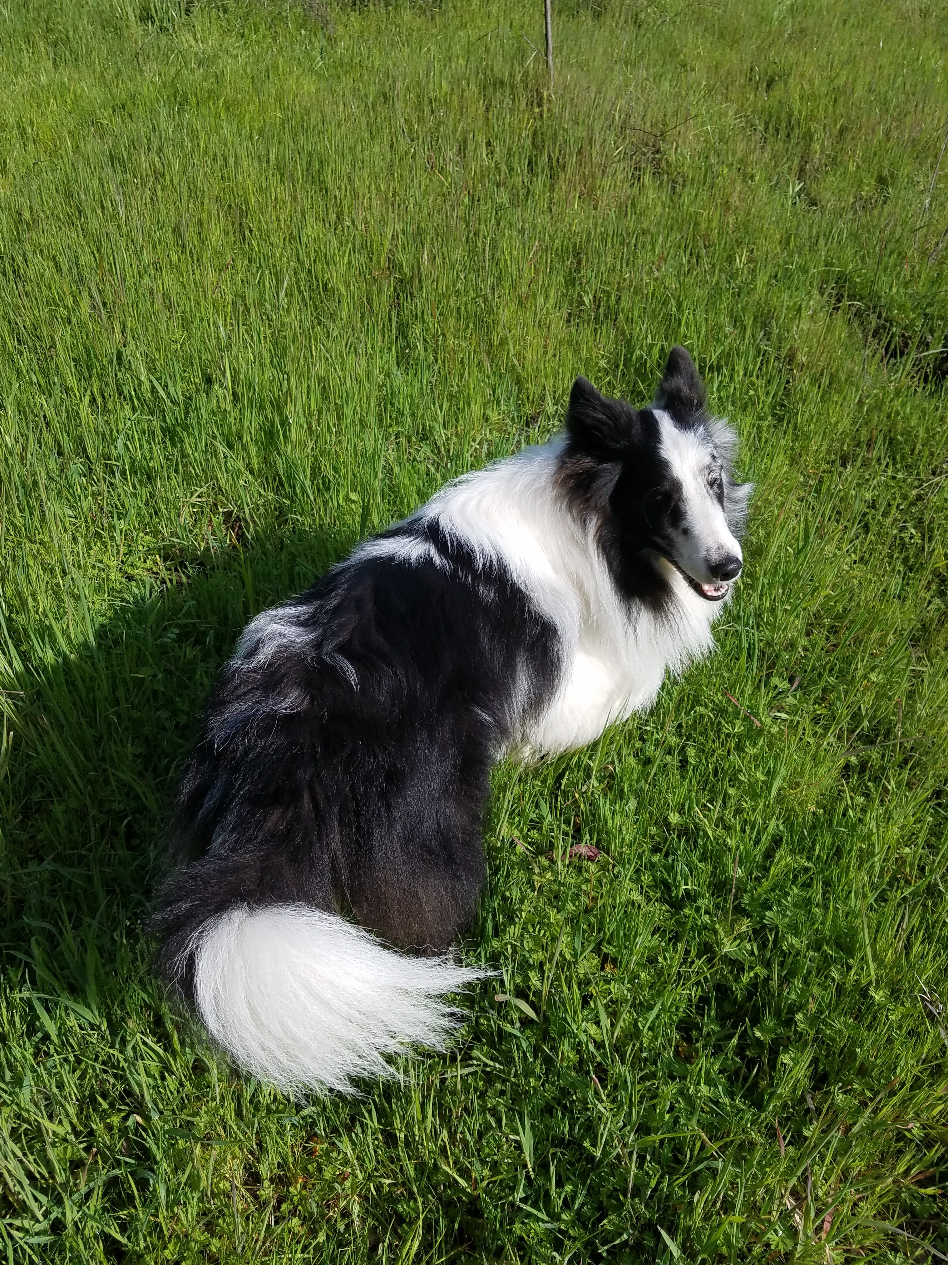 As the light wanes, I plod back to the house after the evening chores.  I watch Jake trotting ahead of me, his fluffy ‘pants’ swaying with each stride, his tail bobbing over his back like a plume.  It has been a rough few weeks at work, the office politics reaching a fevered pitch – yet I find myself smiling reflexively.  I begin to think of a saying I’ve heard, in various forms, since I first had Brita – you always end up with the dog you need.