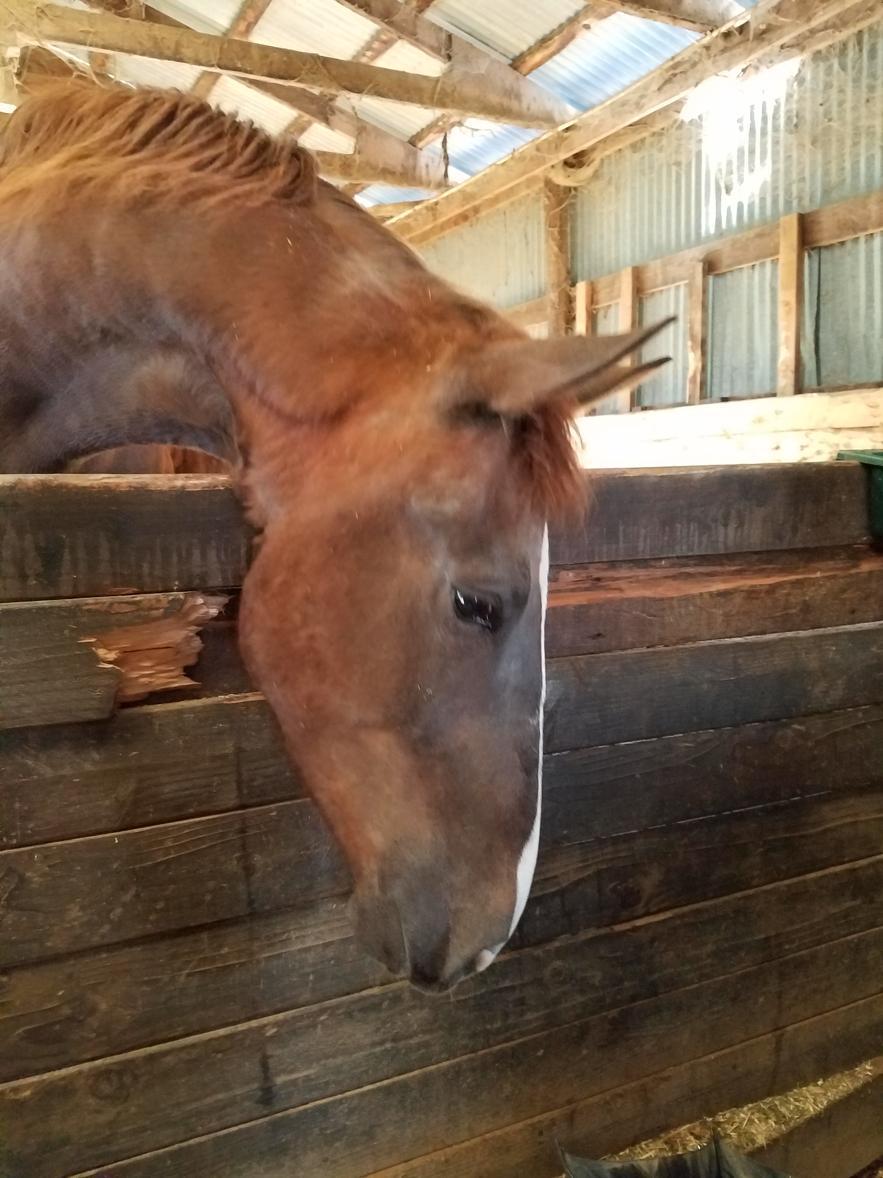 I would love to offer my horses their own special Eden – but as humans we cannot even say what that would be! Many seem to think they know, and they base that upon the lives of wild horses. But do we still live as our ancestors did? And isn’t it by choice that we have houses, beds, etc.? Noble has free access to the back, and takes full advantage; however, in inclement weather (heat, wind, rain) he will simply poke his head out, then return to the comfort of his stall. So, stall life is not the horror to horses that people try to say – provided they have light, interaction, and opportunities for amusement. So, if you are like me and your horses spend time in stalls, no need to feel guilt. But try adding some horse-safe branches and see what happens!