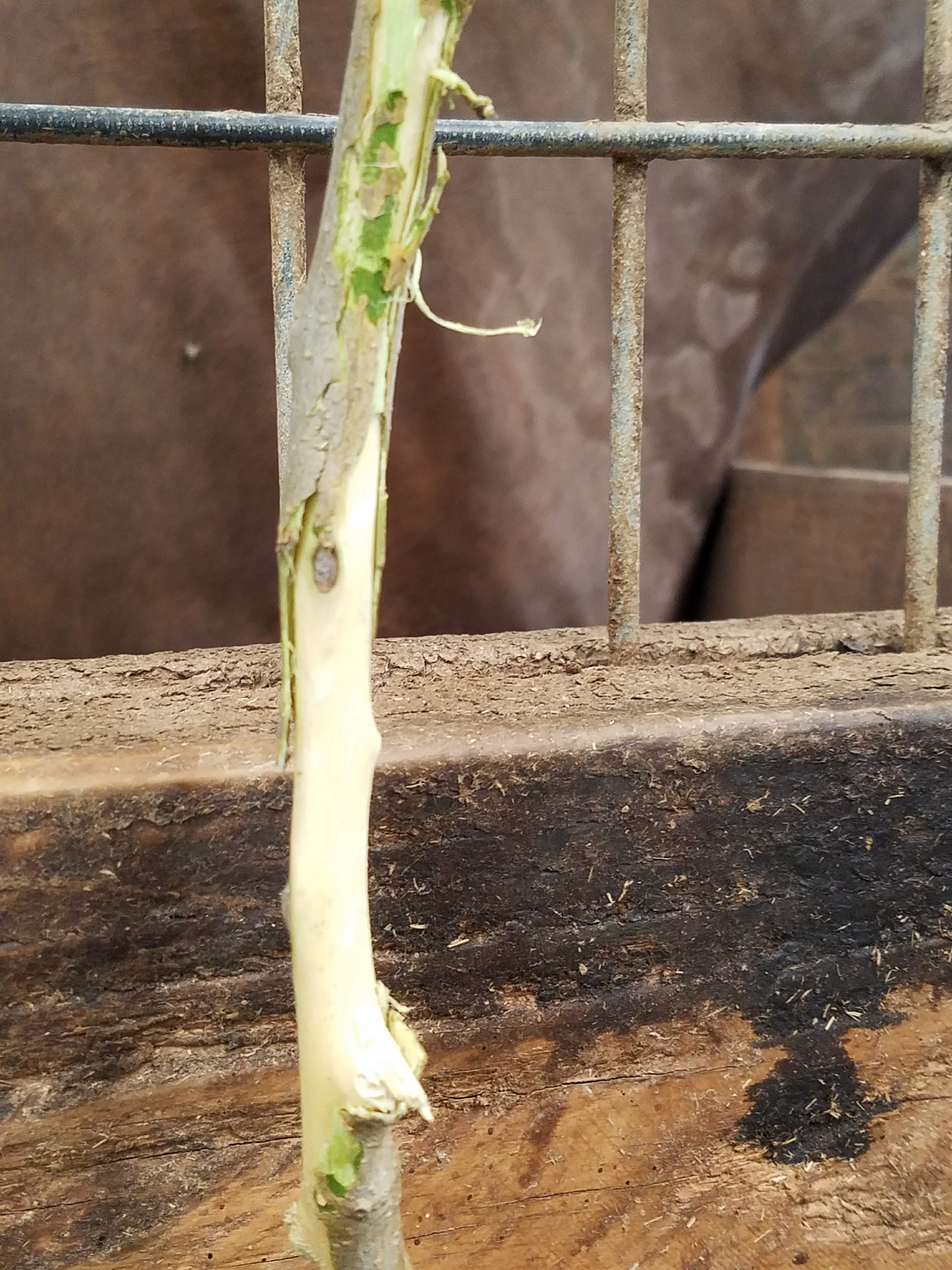 Of course, knowing that they will be dining on the leaves means you have to be careful about what branches you offer. There are a lot of resources online that can help guide as to what plants to avoid. The ASPCA offers an extensive list of plants toxic to horses, and I found this list of safe trees for horses (short, but a good place to start). Tried and true for my horses have been poplar, mulberry, apple, and rose. Many fruit and nut trees are actually dangerous to horses, but apple is an exception (being actually in the rose family … and anyone can eat a rose!). Pear should be equally safe, also from the same general family – but I have not yet found confirmation of that, so holding off for now.