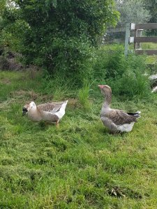 It actually started Friday, when my mother discovered that our gander Thorny had died. He was fifteen, which is a pretty good age for an African goose (not as long lived as some varieties). But, it left us with two dilemmas – what to do with his body, and what to do with his companion Granny Goose. My plan for the weekend had been to finish one project, make progress on another, and work with the horses. But, Death doesn’t take a number.