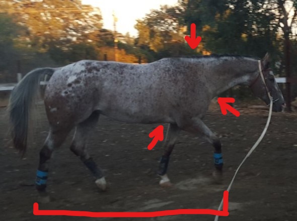 - The topline of his neck is hollow, particularly in front of the withers. Compare this to the position of the neck in the first lunging picture.