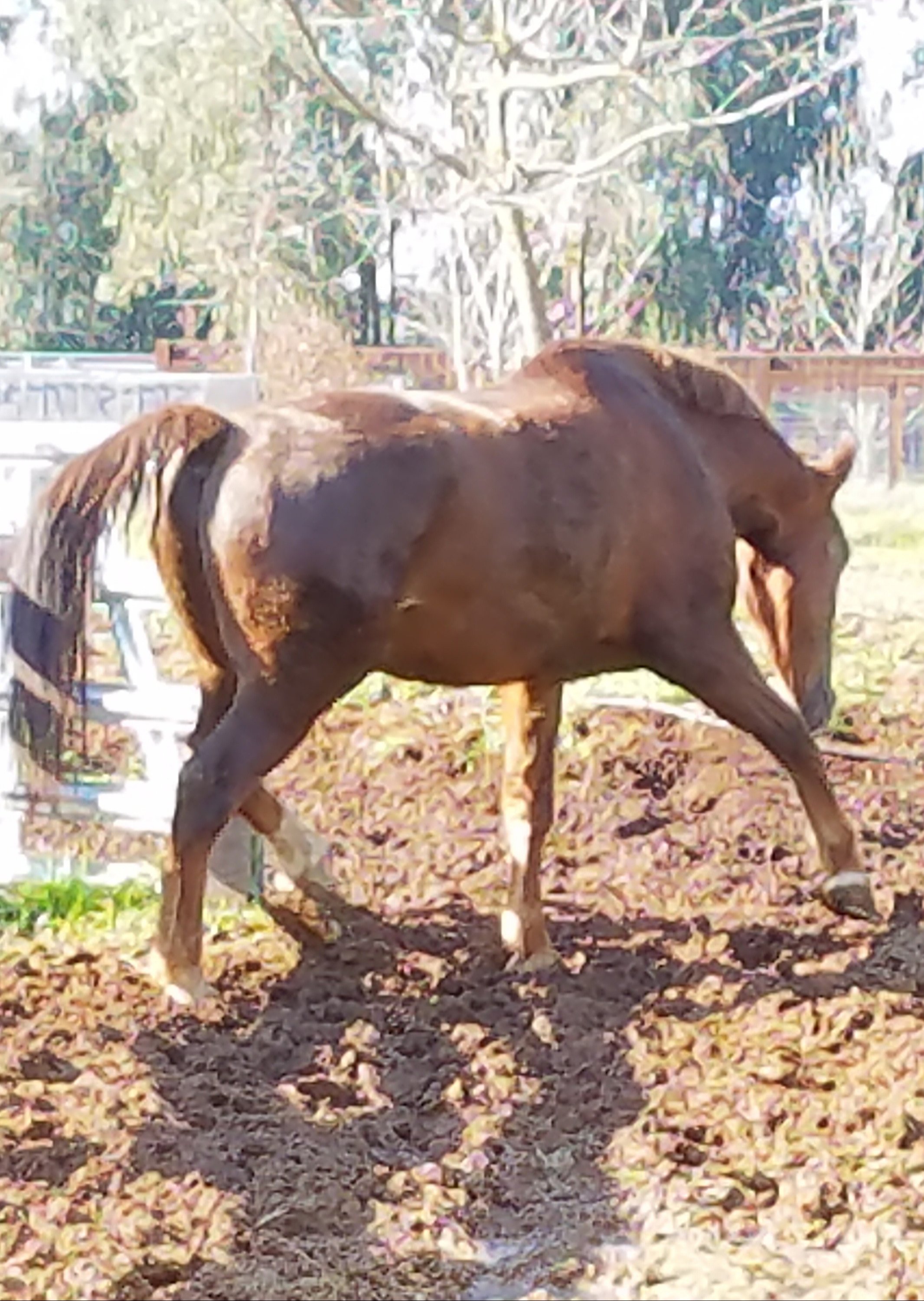 There is one constant, every winter – Noble hates the mud. Once it reaches a certain point of sloppiness, there is nothing that will entice him to cross the ‘bog’ to reach the higher ground and grass. This has been going on for years. Even when Java was around, we had to take the long route, through the arena, to get them turned out. Noble just does not like his giant feet to get wet, or to feel that suck from the mud. Nor will he go out when the rain is actually falling, even before the ground gets mucky. Yet, every winter it is inevitable that I see posts from people declaring that their horses do not need shelter or stalls, because they are living the life nature intended. If that is the criteria, then why do we keep our dogs inside? And more to the point, why are we not living around campfires still?